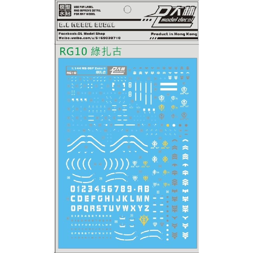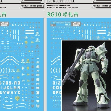 DALIN DL Rg10 DALIN DL GN10 Water slide Decal For 1/100 TV Cherudim Gundam Decal For RG 1/144 Ms-06f Green Zaku 2