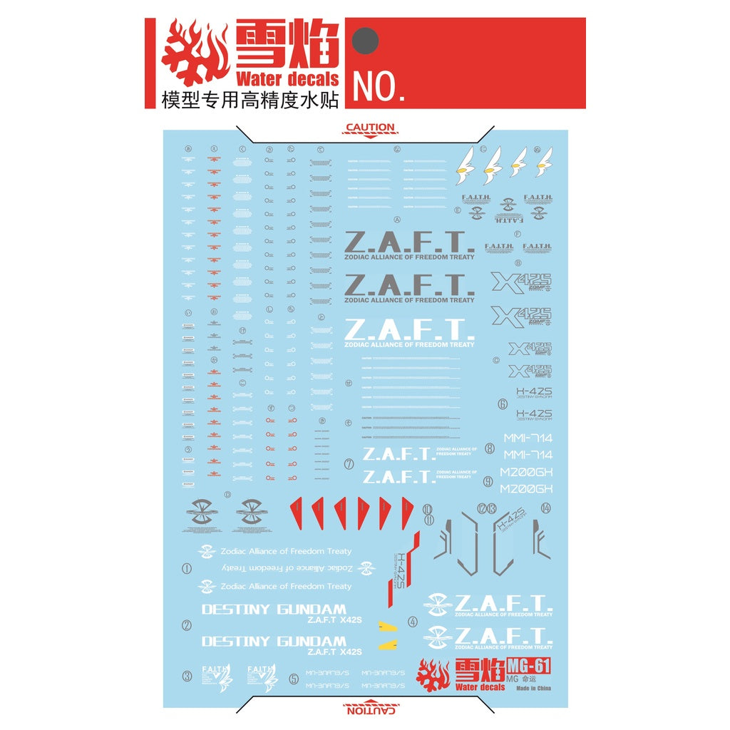 Xueyan Water Slide Decal For MG 1/100 DESTINY Gundam Fluorescence